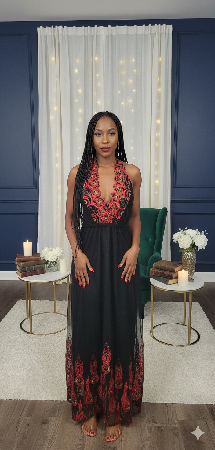 Faites sensation avec notre Robe Royal Flame, un modèle long irrésistiblement glamour.